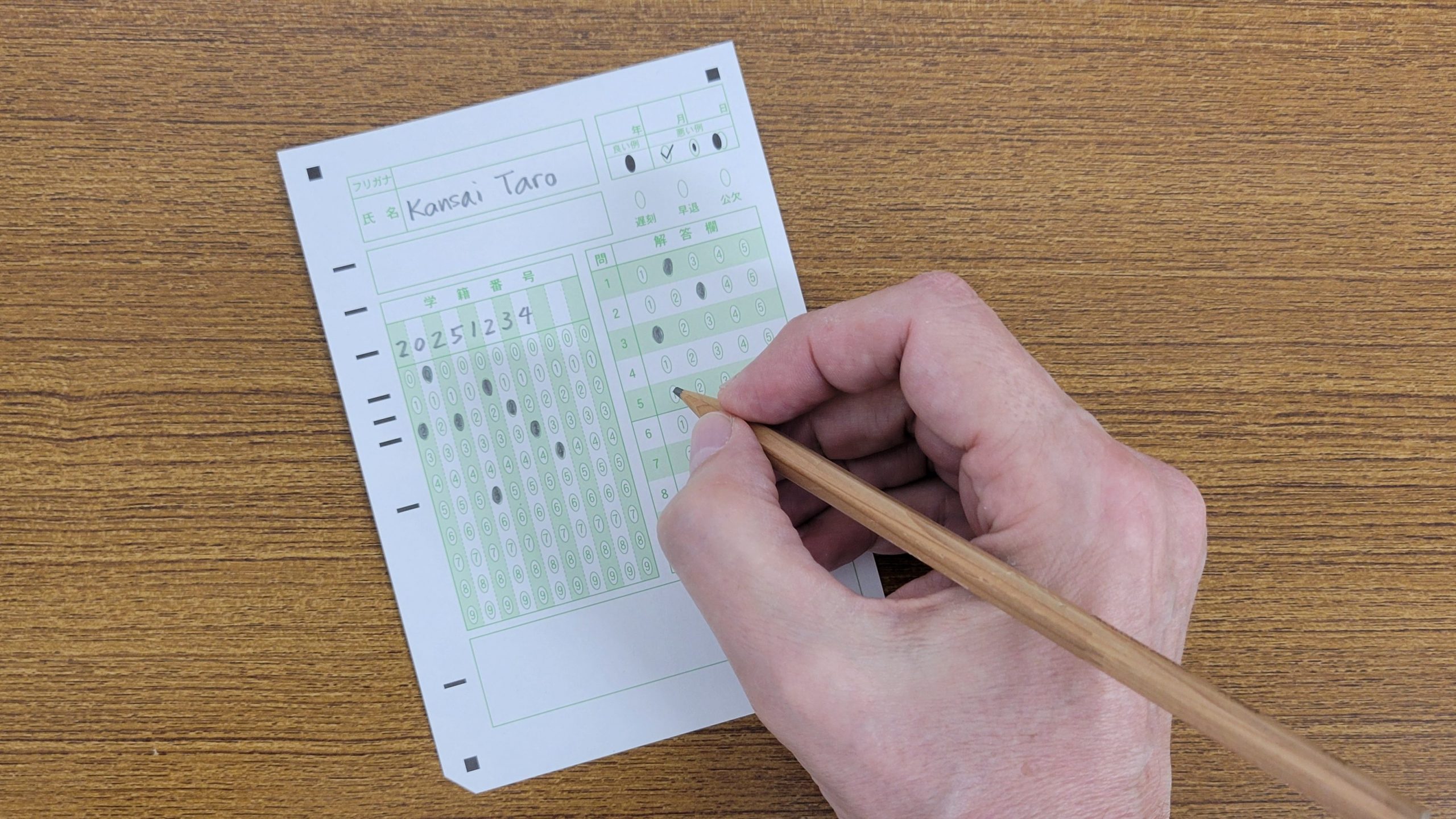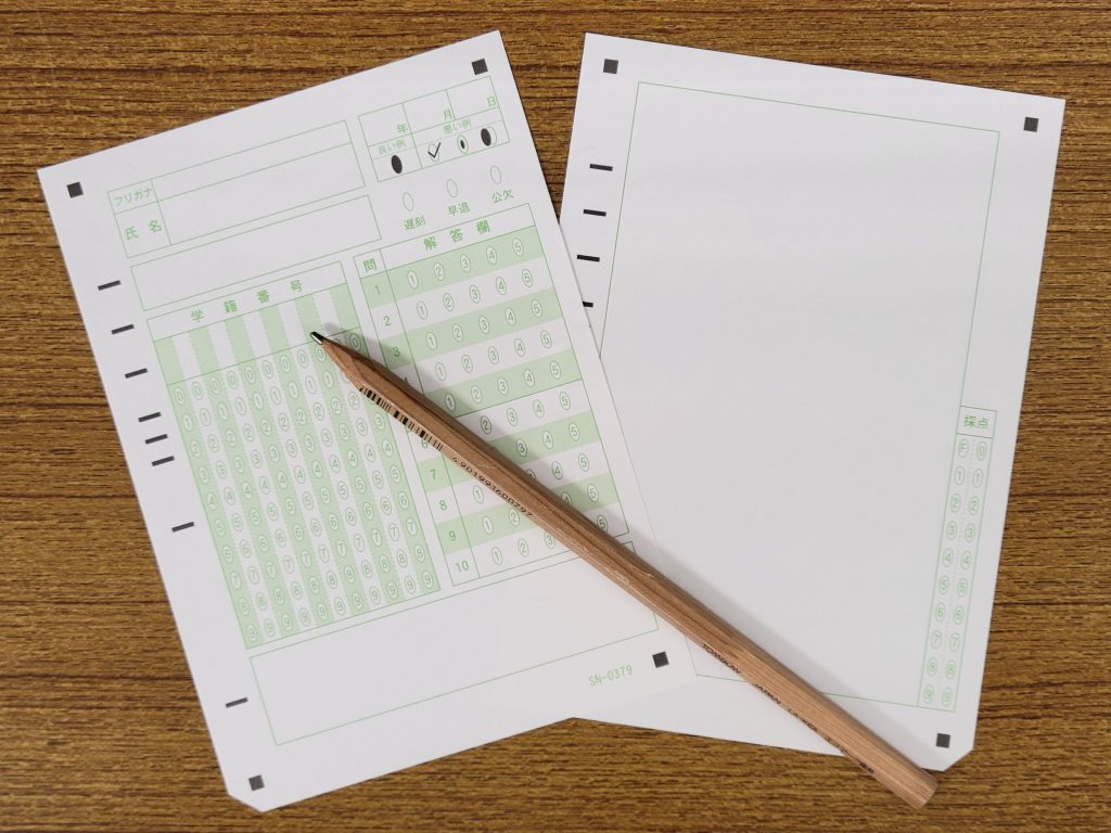 With around 8 minutes left in the class, students receive the mark sheet and first fill in their name and student number. They then use the back side to write a short reflection, in either Japanese or English, on what they learned in that day’s lesson. I encourage them to include something that particularly interested or surprised them, as well as what they still find difficult and how they plan to improve. Most students finish within 3 to 4 minutes.